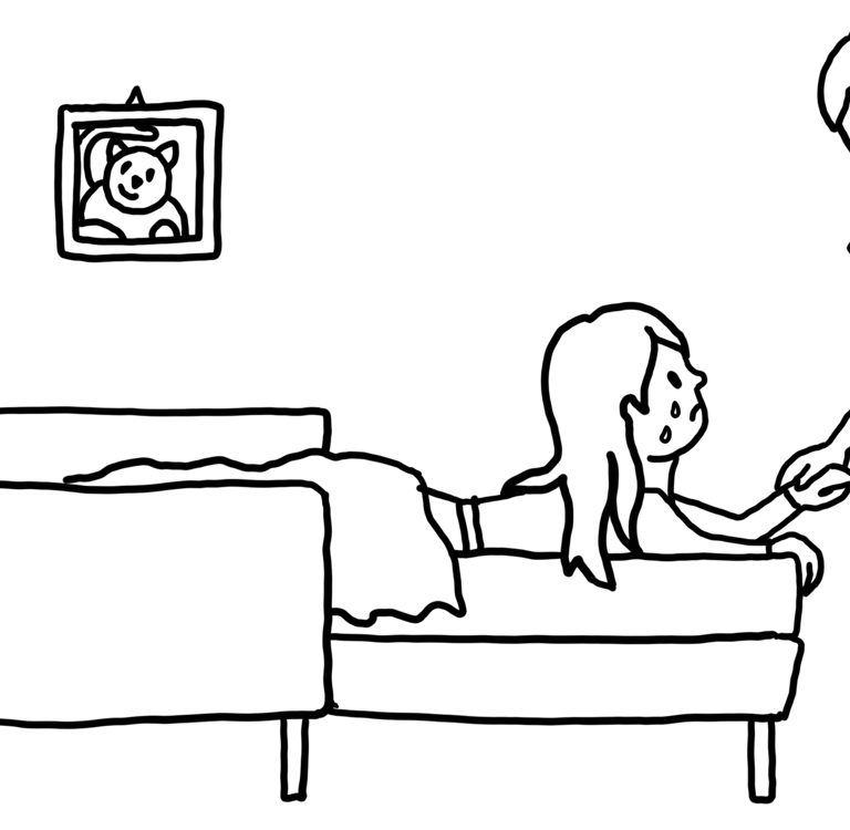 Ik pak zakdoekjes, geef haar knuffels, en de poezenknuffel die we kregen toen we Hero moesten laten inslapen. We zitten samen stil.