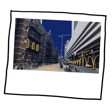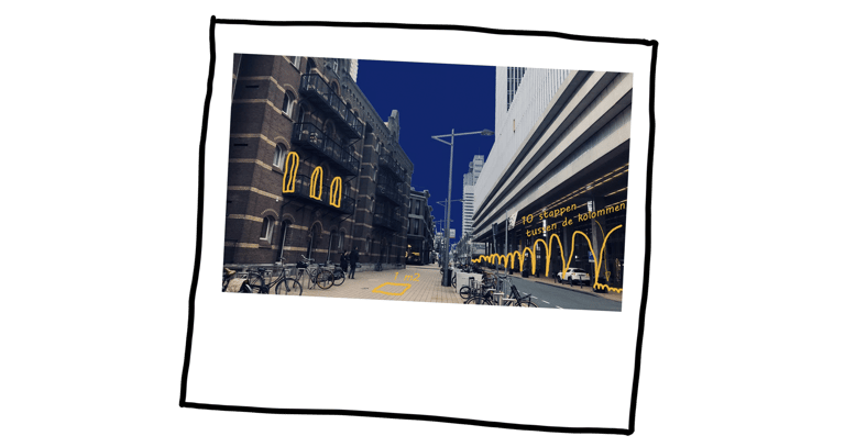 Als we bij Wilhelminaplein naar buiten gaan, lopen Milan en Elissa energiek naar buiten. “Mam, heb je nog meer rekensommen?” Ik glimlach, omdat hun moeheid en tegenzin in 5 minuten zijn gedraaid naar vrolijkheid en enthousiasme. “Die 2 gebouwen hier links: hoeveel ramen hebben die samen?” Ieder gebouw heeft 3 verdiepingen met een 3 aaneengesloten balkons. Achter ieder balkon zitten 2 ramen. Ze beginnen druk te rekenen. Milan rekent 3 verdiepingen x 3 balkons x 2 ramen x 2 gebouwen = 36. Elissa 3 balkons x 2 ramen x 3 verdiepingen x 2 gebouwen. Net een andere keer-som, zelfde resultaat. Dat vindt Elissa interessant om te merken. En met name; dat keersommen ook buiten school toegepast kunnen worden, en zelf nuttig blijken te zijn!