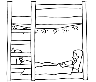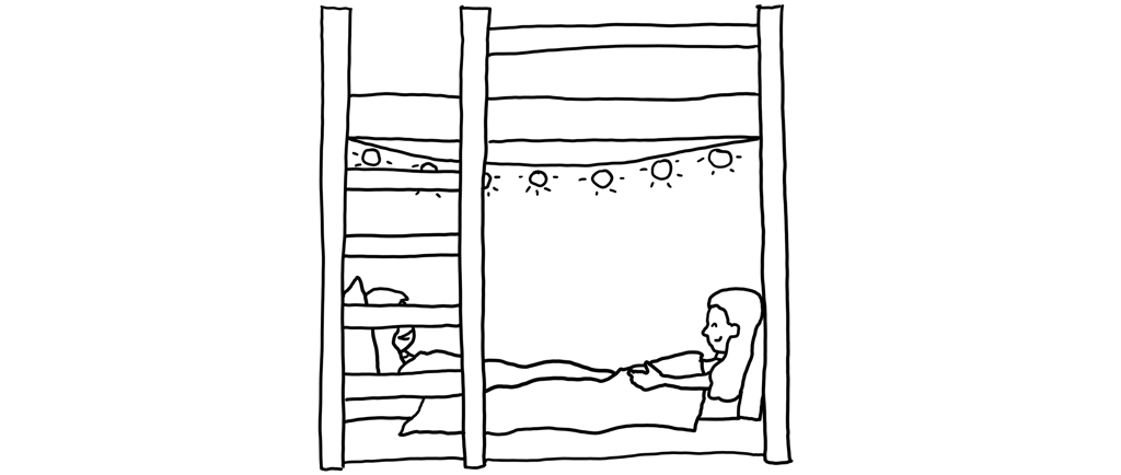 De avond ervoor had ik ze welterusten gewenst toen Elissa in de hoogslaper lag en haar vriendinnetje op de matras eronder. Alles leek rustig. Geen reden om te vermoeden dat ze later samen op één matras zouden gaan liggen…