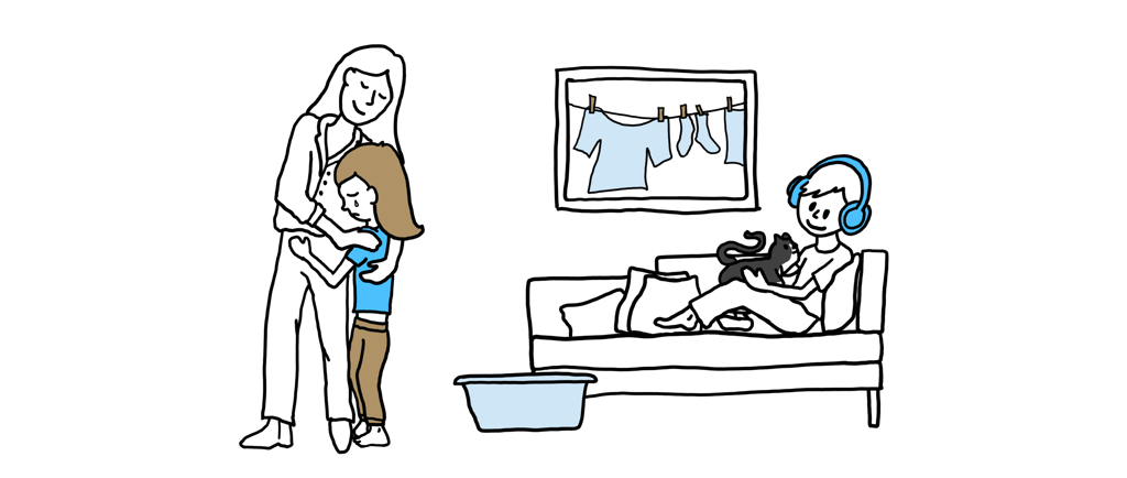 Als ik terugkom, ziet het er keurig uit. De woonkamer is netjes en er hangt rust in huis. Milan ligt ontspannen op de bank, aait de kat en luistert naar een luisterboek. Het oogt vredig. Ik denk: wat fijn dat het zo goed ging! Tot Elissa ineens voor me staat, met betraande ogen. Haar gezicht vertelt een ander verhaal.