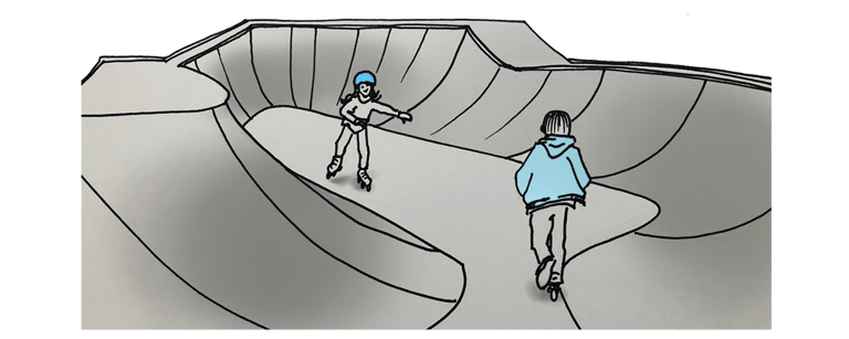 Vier weken geleden stonden ze nog bibberend op de skatebaan: “Ik durf het niet, ik vind het te eng, ik ben bang dat ik heel hard ga vallen, ik wil weer naar huis”. Maar nu racen ze de baan over, nemen hobbels, maken sprongen en vermaken zich er uren achtereen.