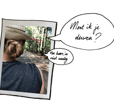 Als we eindelijk bij de camping aankomen, rent ze zonder een woord te zeggen naar onze tent en ritst alles dicht. M’n broer en vader kijken me vragend aan, maar ik glimlach “komt wel goed”. Ik vraag Elissa of ik de tent in mag komen. Ze mompelt een “nauwelijks hoorbare “okay….”. Ik vraag haar wat er aan de hand is. In tegenstelling tot de vorige keer – want ze weet inmiddels dat ik doorvraag tot ze vertelt wat er is, en dat haar emoties ruimte geven enorm oplucht – laat ze nu haar koppigheid snel varen. De tranen komen naar boven, ze vertelt dat ze boos en verdrietig tegelijk is. Ik vraag of het te maken heeft met de fietstocht, of ze toch door me geduwd had willen worden. Ze knikt.
