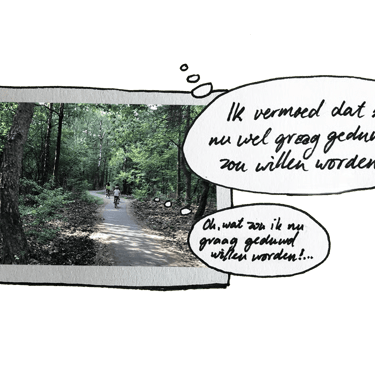 Het is een van de weken van afgelopen zomervakantie. Milan, Elissa en ik maken samen met opa, een oom, twee neven en een nicht een prachtige fietstocht in de omgeving van Radio Kootwijk, waar we samen aan het kamperen zijn. Tijdens het fietsen denk ik bij Elissa te zien dat ze het fietsen zat is.