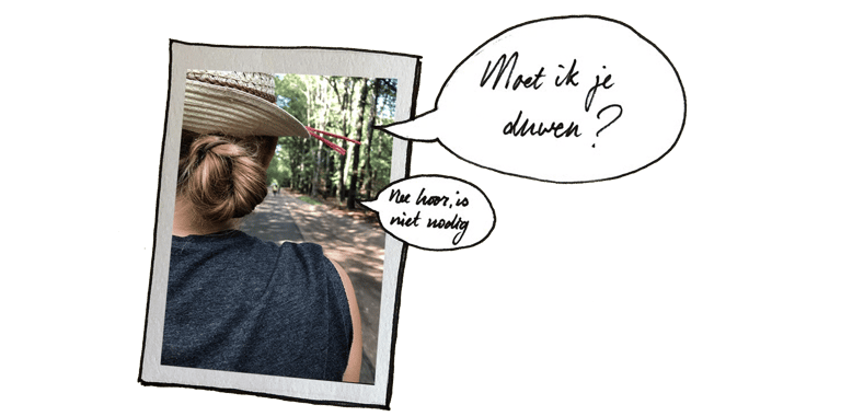 Dus ik vraag Elissa of ze hulp nodig heeft en ik haar moet duwen, maar dat is niet nodig. Als we weer een stukje verder zijn, vraag ik het opnieuw, en nee, dat is nog steeds niet nodig. Elissa is 7, en heerlijk eigenwijs en zelfstandig. Ze heeft een sterk lijf en houdt wel van een uitdaging. En net als haar moeder op die leeftijd – en nog steeds – wil ze dingen zelf doen. Daar geef ik graag ruimte aan!