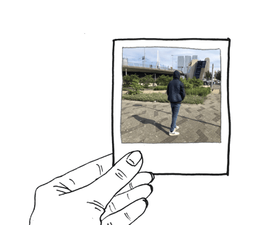 Als de doktersafspraak achter de rug is, lopen we buiten. Hij puft van de hitte. Het is warm lenteweer en ik heb mijn jas uitgedaan. Maar hij niet. En onder zijn jas draagt hij z’n hoody. Capuchon natuurlijk over zijn hoofd, zoals meer pubers graag doen (al heeft hij dat altijd al fijn gevonden; als beschermlaag tussen de drukke buitenwereld en hemzelf.)